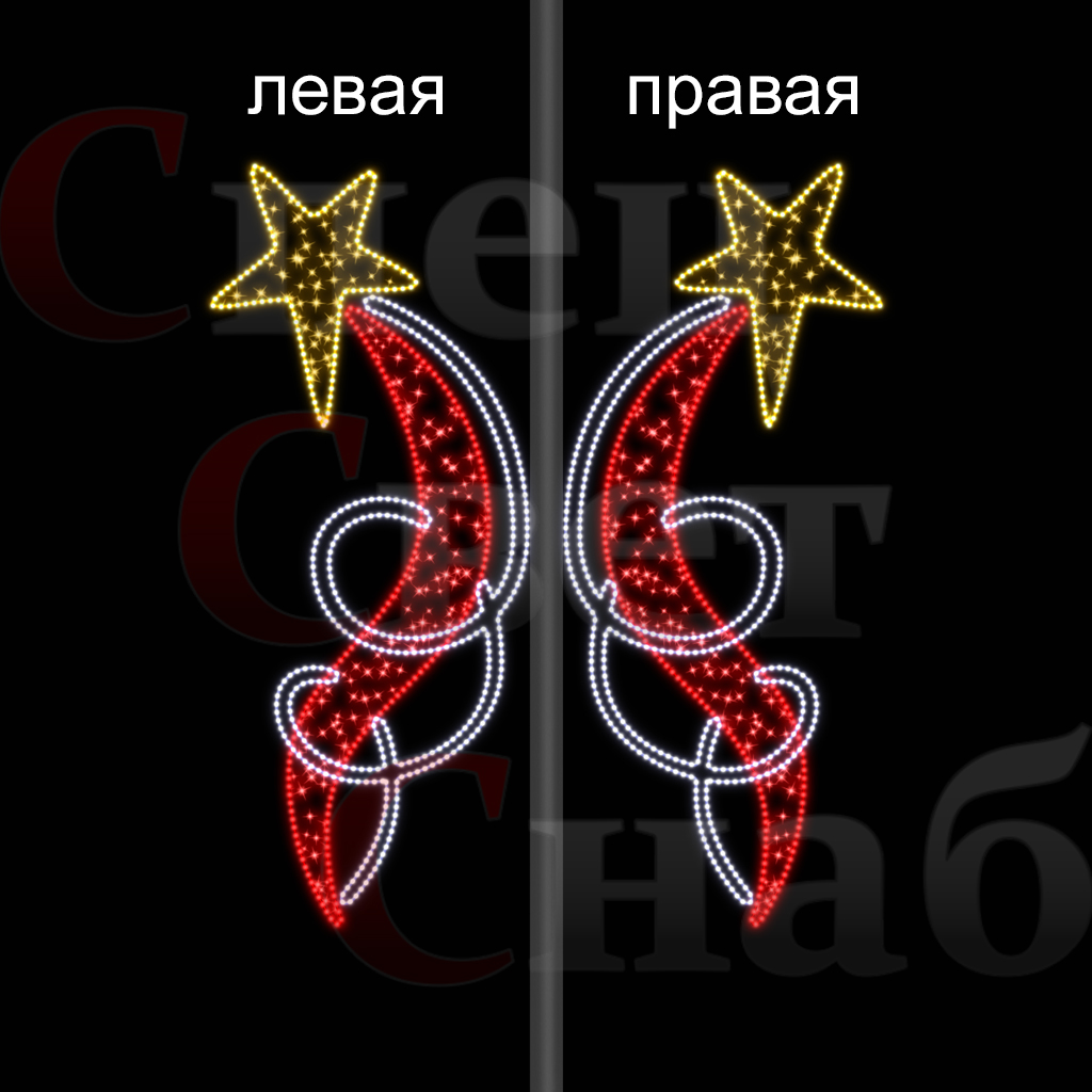 Светодиодное украшение города "Комета" можно использовать для украшения фасадов зданий, для украшения фонарных столбов.